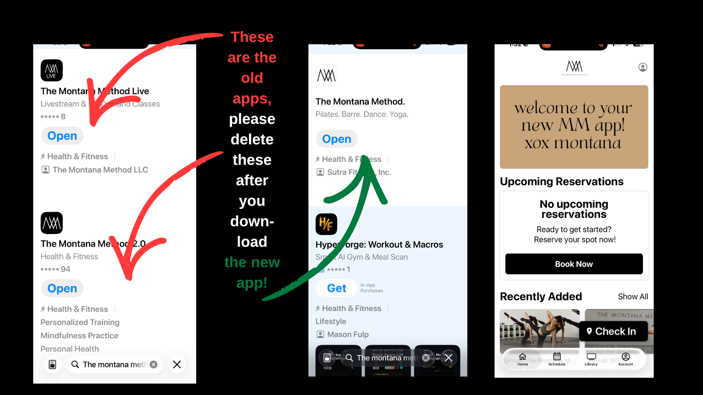 As of Wednesday, April 8, 2026, we’ve transitioned software to improve your booking experience, and host The Montana Method community all in one place! You will no longer use our current apps, or the Mindbody web or app, to book and purchase classes. We’ve also made some exciting changes to our Virtual Studio, so please read below!